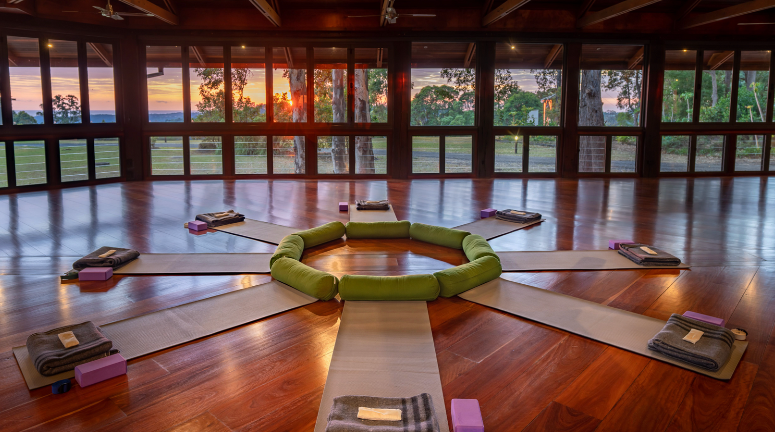 The Iyengar yoga studio is the only studio of its kind at an Australian retreat and is quite different to Hatha, Yin, Vinyasa and Restorative yoga. You will find yoga mats set with bolsters, blankets, blocks, special chairs and ropes hanging from the wall. These props work to help you feel supported and relaxed.